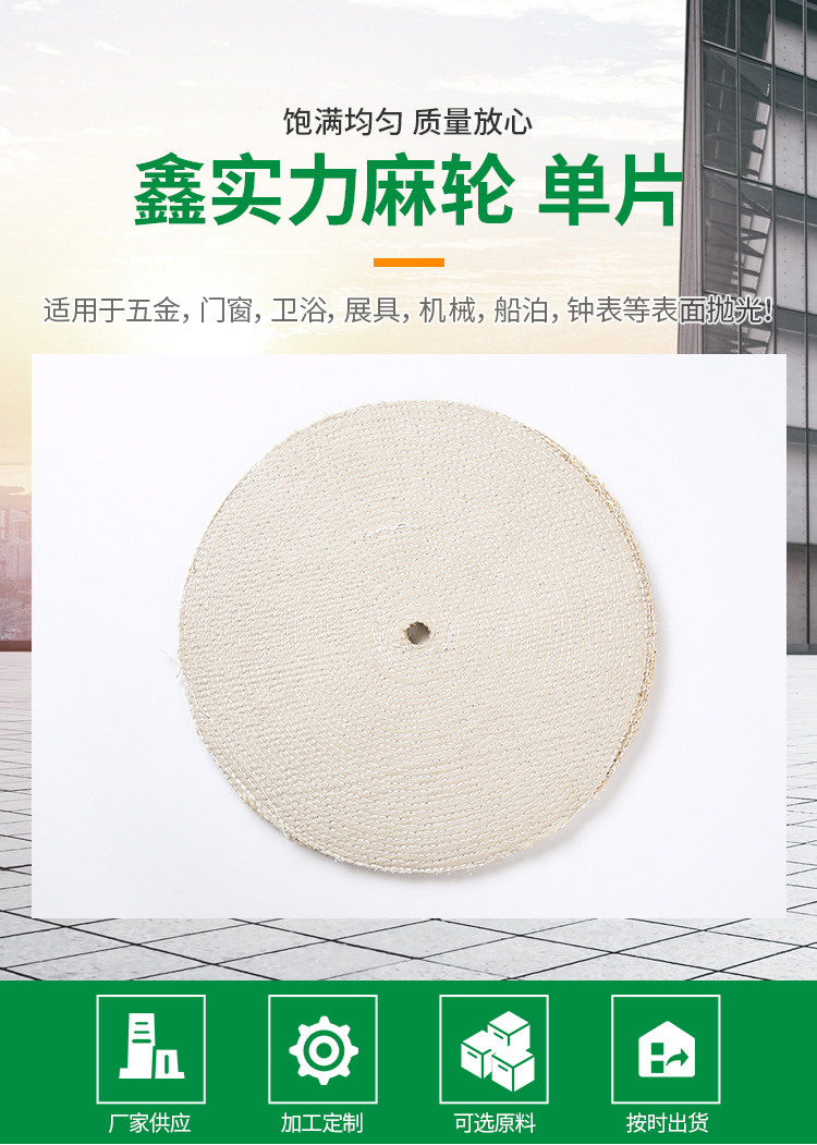 麻輪主要產(chǎn)于廣西本產(chǎn)品屬廣西很好的劍麻不偷片經(jīng)多道工序制作而成!對(duì)五金,眼鏡,拋磨有著耐磨不脫毛等特點(diǎn)!大小規(guī)格可按客戶加工!