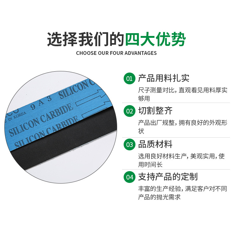 砂布屬性:處理棕剛玉、混紡布、密植砂、砂布柔軟有韌性,適合做窄砂帶。